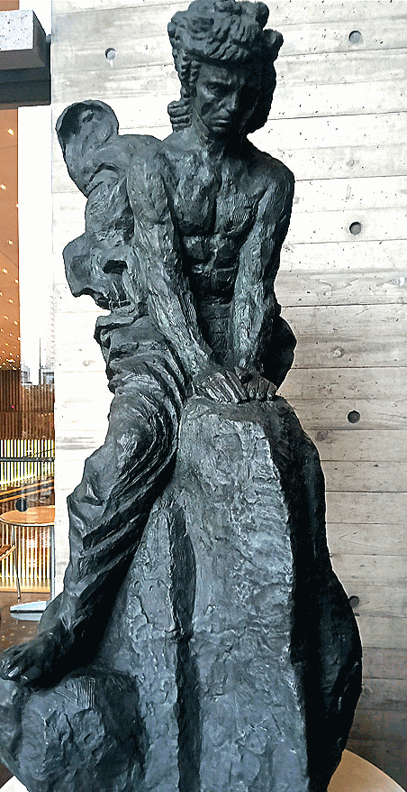 ここで、もしこの主題をオーギュスト・ロダンが扱ったらどうなっただろうか、と想像すると理解が深まる。ロダンであれば、おそらく悲嘆の感情を前面に出すか、あるいは決然とした意志を身体全体で表現しただろう。ロダンの彫刻は、感情や心理の局面を身体に刻み込み、像そのものが物語を語る。