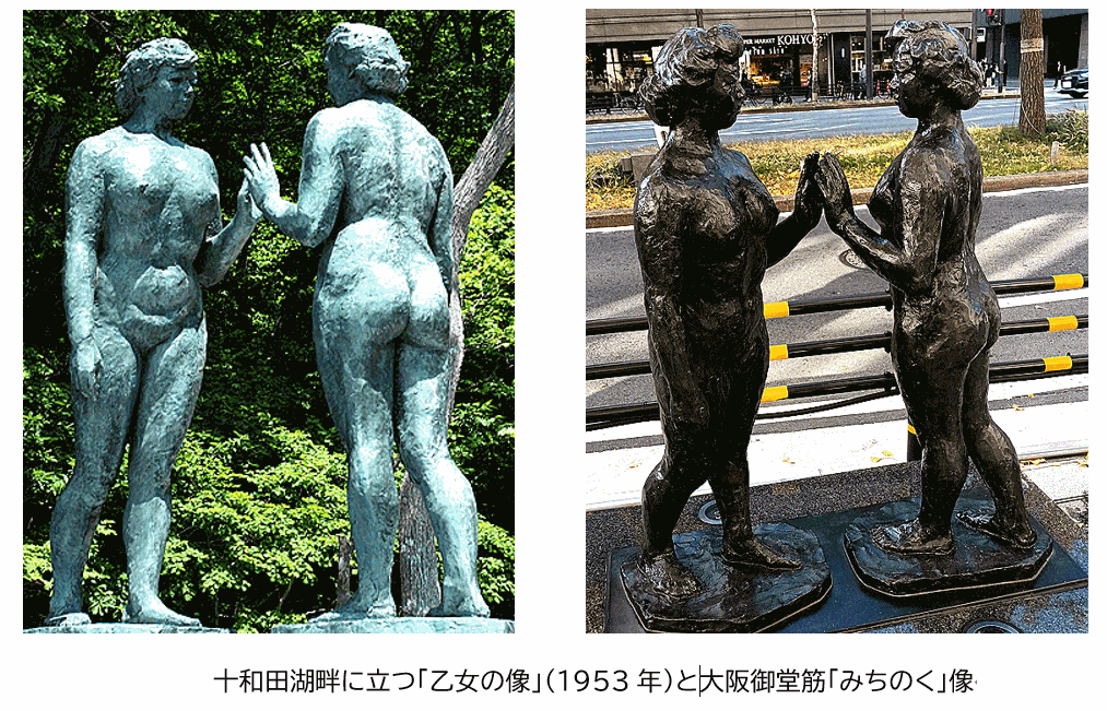 「みちのく」は、十和田湖畔の裸像と同一原型をもつ作品である。確かに、顔貌には智恵子の面影がはっきりと認められる。