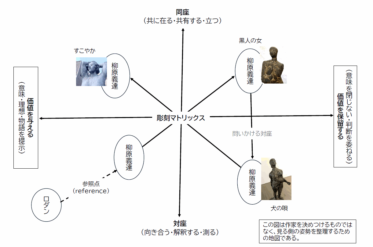 現代彫刻を理解するとは、作品を理解することではない。自分自身が、どの位置から彫刻を見ているのかを理解することである。彫刻マトリックスは、そのための有効な道具であり、現代彫刻を「わからないもの」から、「位置の異なる思考の実践」へと変換する。