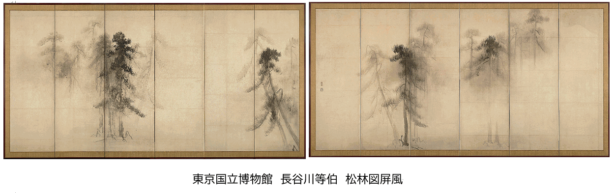 この思想は、俳諧にとどまらず、日本の絵画や工芸、美術全般に通底する。たとえば長谷川等伯の「松林図屏風」において、描き手は自然を構成的に把握する主体ではない。作者の考えや意図を前に出さず、自らは一歩引くことで、霧と余白のなかに松林そのものが立ち上がる場を成立させている。ここに見られるのは、日本文化に固有の「同座」という立ち位置である。
